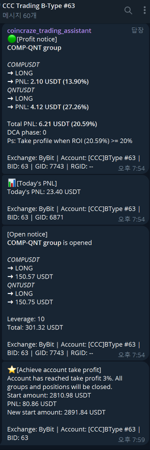 텔레그램 참여를 통해 누구나 편히 실시간 봇 가동 진행상황을 모니터링하면서 수익 창출하는 과정을 보실수 있습니다.