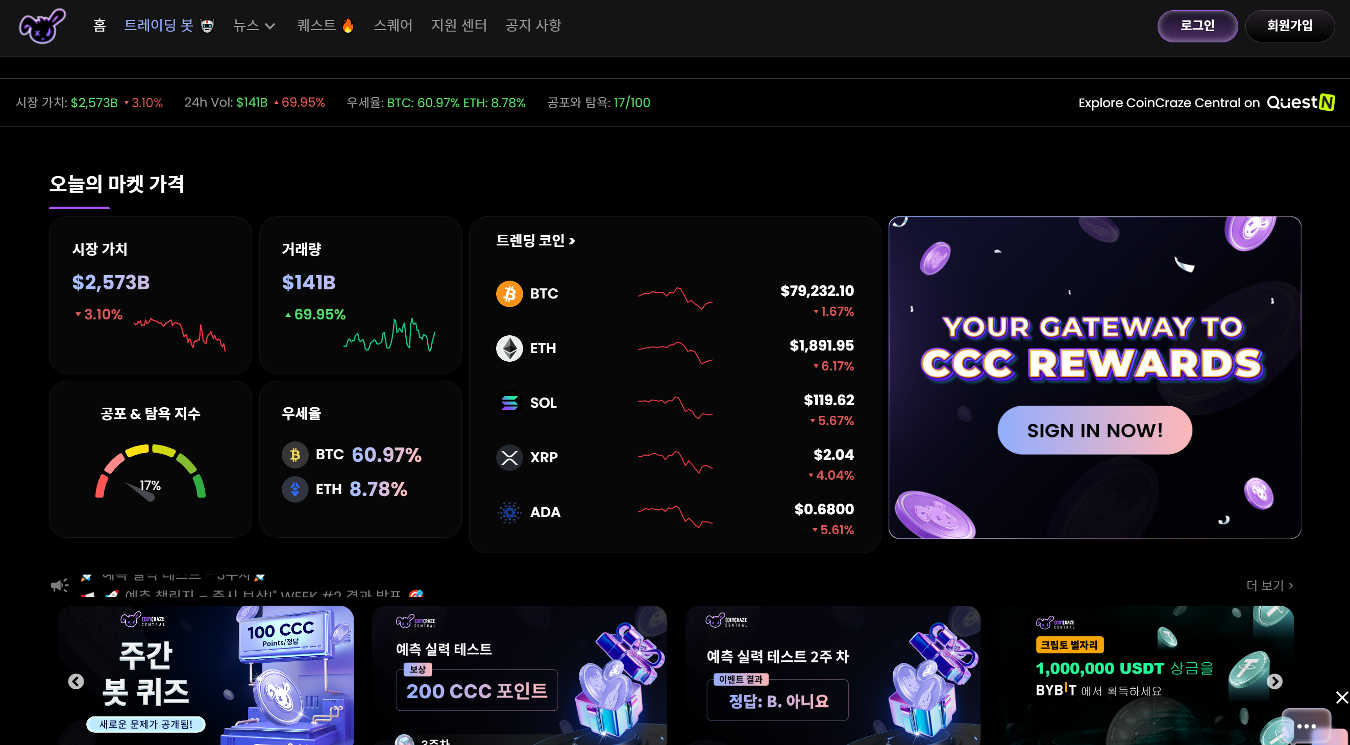 코인크레이즈 크립토 선물 트레이딩 봇을 사용하기 위해서는 코인크레이즈(CoinCraze) 회원등록을 먼저 해야 합니다.