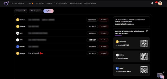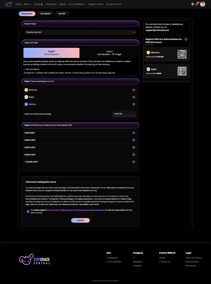 CoinCraze 암호화폐 트레이딩 봇을 신청하는 절차를 소개합니다.