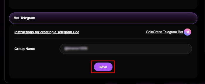 텔레그램 그룹 이름을 아래의 그룹네임에 입력한 후 저장(Save)을 클릭합니다.