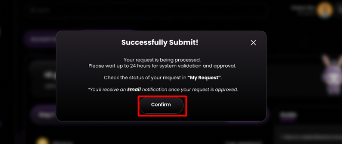 확인 요청 팝업이 나타나면 확인(Confirm)을 클릭합니다.